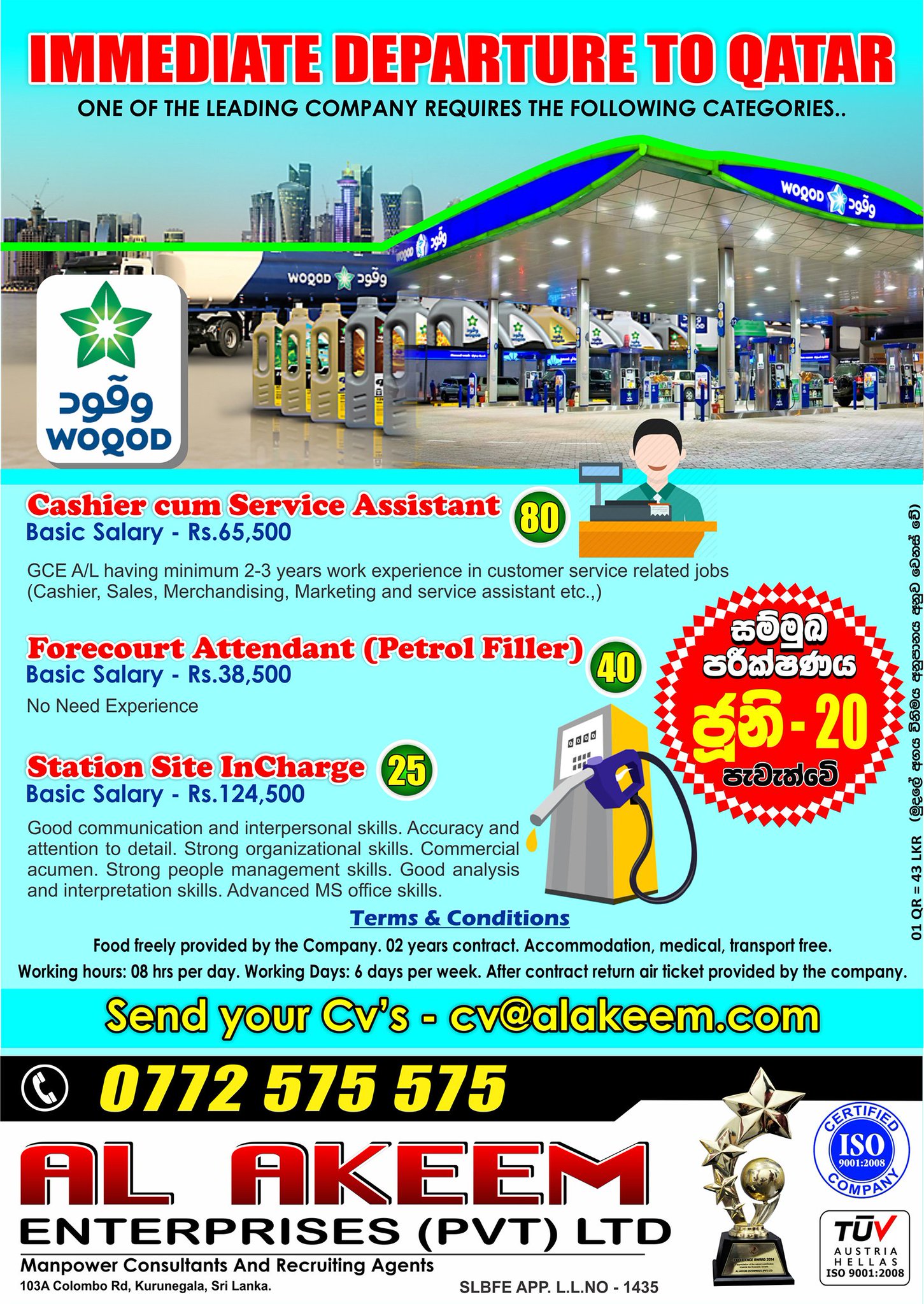 Al Akeem Enterprises On Twitter Urgent Vacancies Qatar Petrol Filler Salary Rs 38 500 Free Food 6 Days Working Call 0772575575 Al Akeem Enterprises Pvt Ltd Https T Co R1qn3yztcv